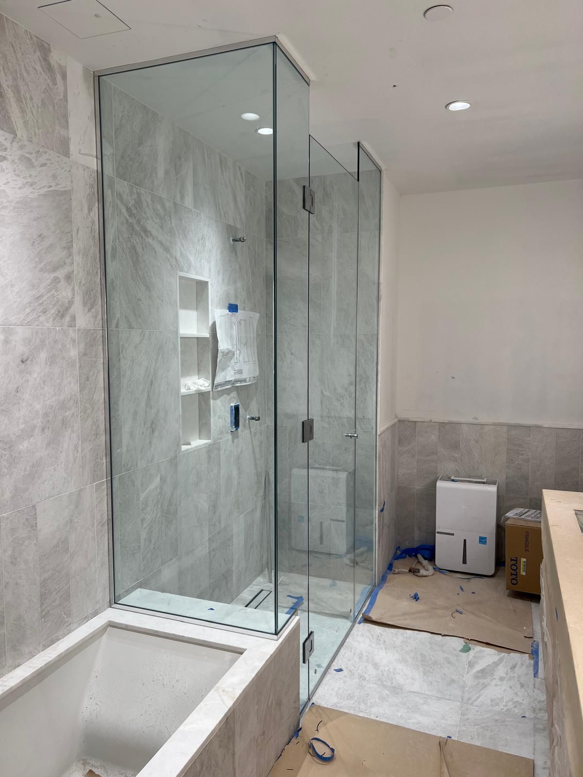 At this job, we were called to replace a leaky, dated framed shower that made the bathroom feel cramped. We measured and templated for a custom frameless enclosure in low-iron tempered glass, then fabricated panels with precise notches for tile and hardware. Our crew installed premium hinges and a continuous sweep for a watertight seal and easy cleaning. The result is a brighter, bigger-feeling bath with hotel-grade finish and a leak-free shower that will hold up for years.